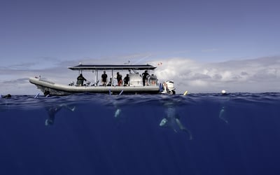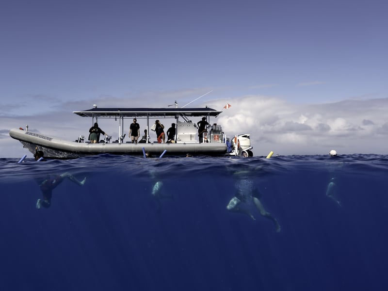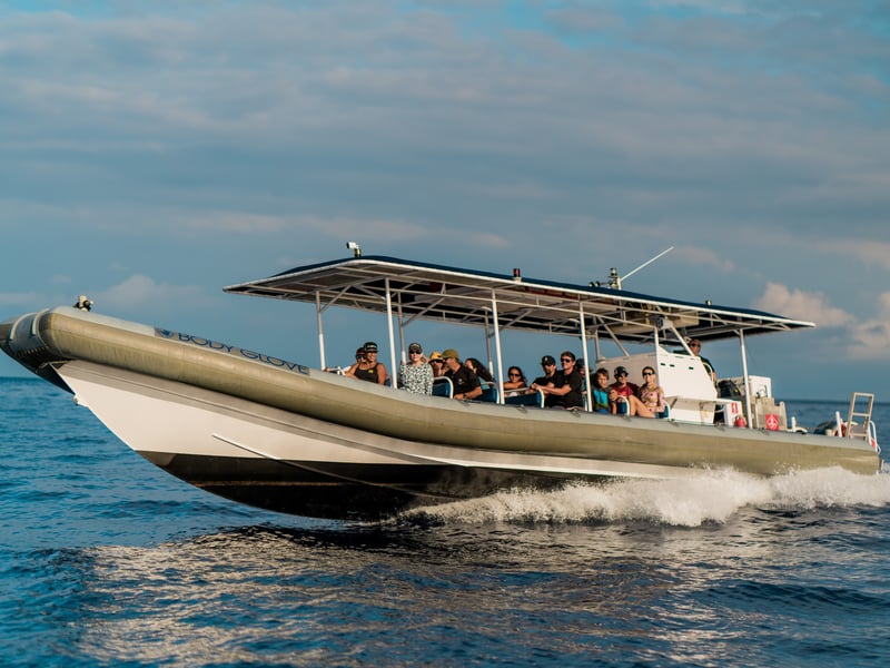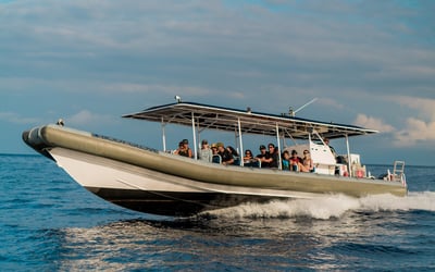 Step aboard the 41 ft Kona Explorer Super Raft for a thrilling whale-watching adventure off Kailua Kona. Enjoy narration from a marine naturalist, comfortable seating, shade, and refreshments as you look for breaching humpback whales, with sightings guaranteed.