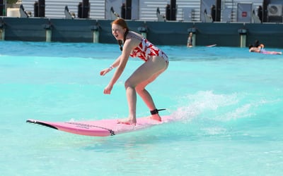 Start your surfing journey with 20 minutes of coaching, then practice for 1 hour in a beginner-friendly lagoon. Learn fundamentals, build confidence, and ride soft rolling whitewater waves.