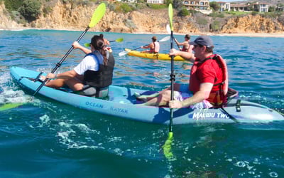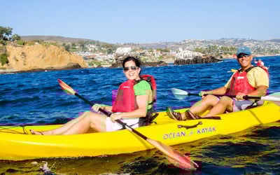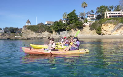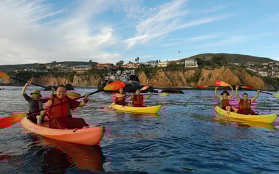 Paddle North Laguna’s protected cove on a guided ocean kayak tour. Learn paddle basics and explore kelp beds, reefs, and hidden beaches with chances to see sea lions, dolphins, and even whales.