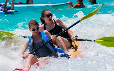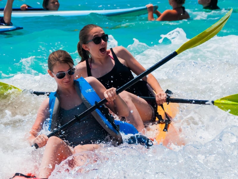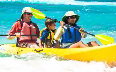 Ages 8+ can paddle tandem with an adult; ages 3–7 may ride in the middle with two adults. You must be able to swim. A minimum of 2 bookings is required.
