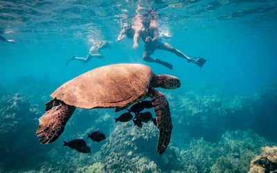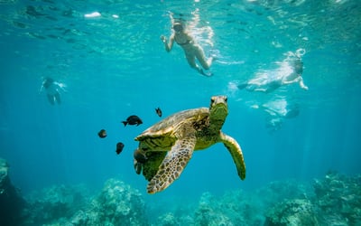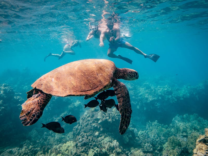 Join a fully guided snorkeling tour at Mala Wharf in Lahaina. Follow experienced guides to vibrant reefs where you can see Hawaiian green sea turtles, with underwater photos included.