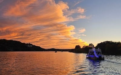 Capture breathtaking sunset views of Lake Austin while relaxing on a captained BYOB cruise.