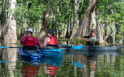 Glide through serene cypress groves and observe diverse birdlife on an eco-friendly guided paddle.