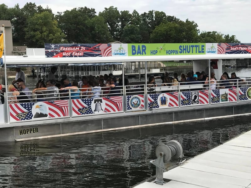 Cruise across Lake of the Ozarks on the 40-passenger Hopper Water Shuttle for a full day of lakeside bar hopping. Swim, sip and soak up the party vibe at Shady Gators and Coconuts during this six-hour round-trip.