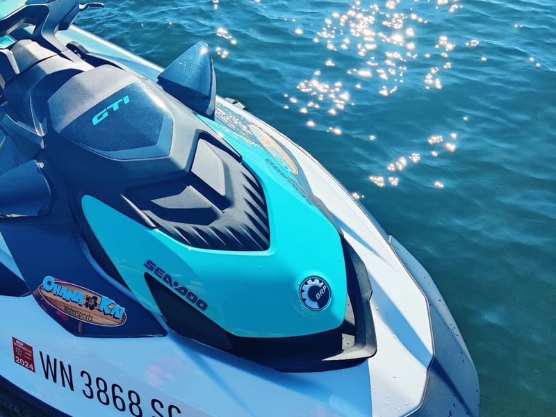 You must be age 25+ to rent and 18+ to operate. Jet skis seat up to 3 people (or 2 adults) with a 400 lb weight limit, and rental time includes setup, orientation, and launching.