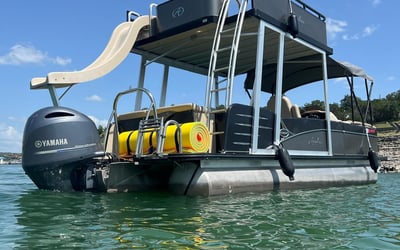 Gather your crew for a fun day on Lake Travis aboard a spacious double-decker pontoon. An experienced captain handles the helm while you relax and enjoy the water.