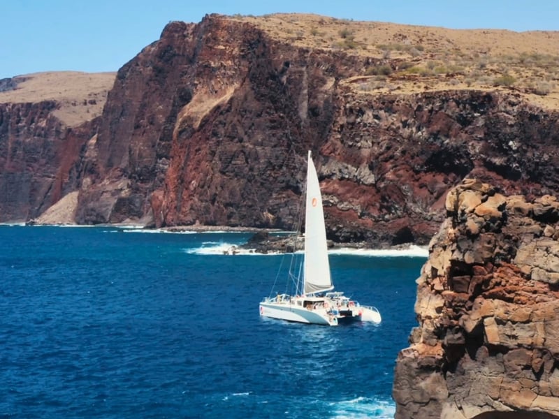 Sail the Lāna‘i coast on a relaxed 6-hour snorkeling adventure. Your crew chooses the day’s best reef—around Lāna‘i or along West Maui—with breakfast, lunch, drinks, and snorkel gear included.
