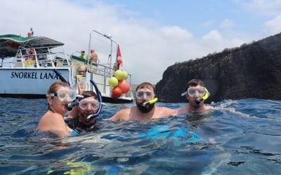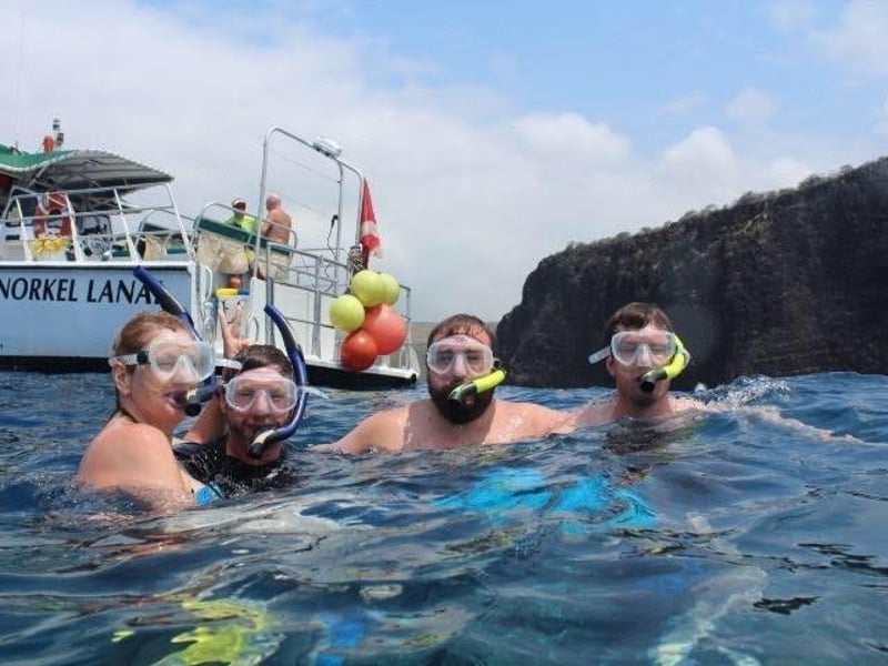 Snorkel the shoreline of Lanai on a half-day trip with two 45-minute stops. Travel by beach launch to a comfortable 50 ft vessel and enjoy snacks and drinks.