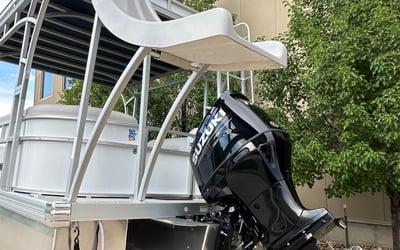 Cruise Boyd Lake on a luxury tritoon with an upper deck slide and space for 14 friends