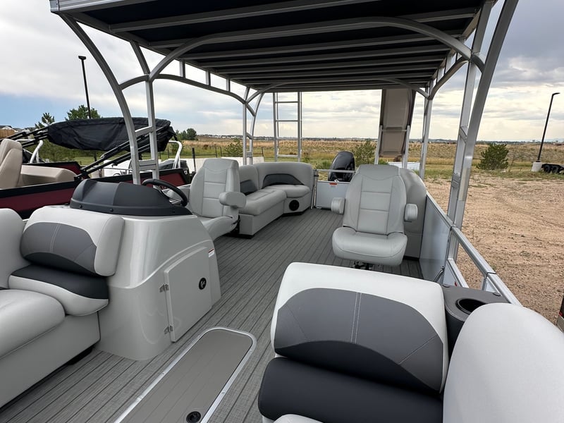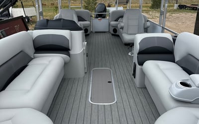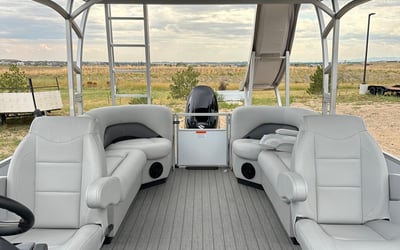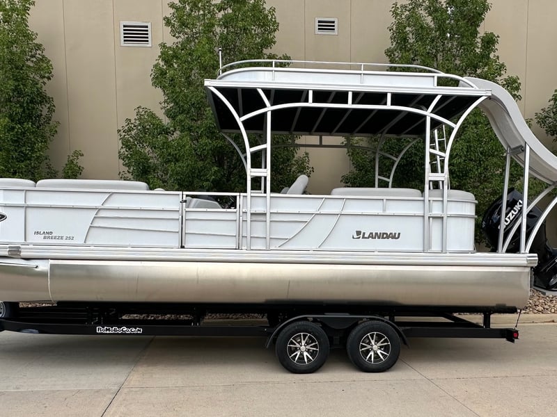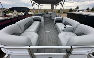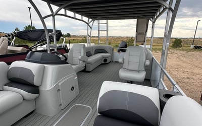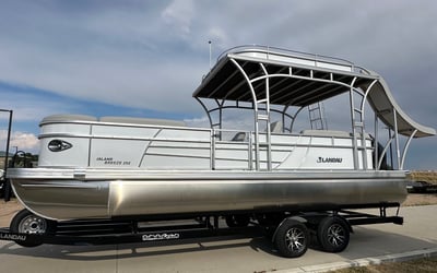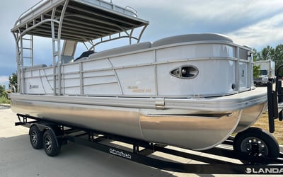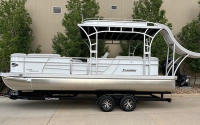 Enjoy a full day on the water aboard a spacious Landau Island Breeze 252 tritoon. Glide across Boyd Lake or your chosen destination, relax on the upper sun deck, and make a splash down the built-in water slide.