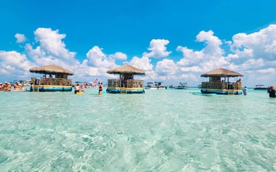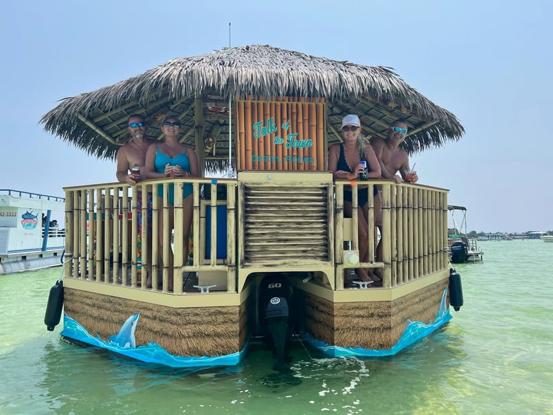 Wrap up your day with a shared 2-hour captained Tiki cruise from Destin Harbor to Crab Island. Relax on board with seating and a restroom, then anchor to swim, float, and enjoy the emerald water.