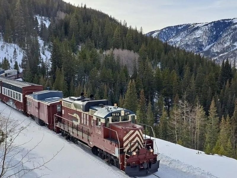 Ride heated lounge cars through snowy Rockies on a narrated 2-hour journey
