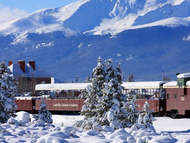 Ride the Leadville Railroad's Winter Express for a cozy 2-hour journey through Colorado's snow-covered high country. Settle into heated lounge or coach cars and enjoy sweeping views of the Rockies.