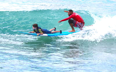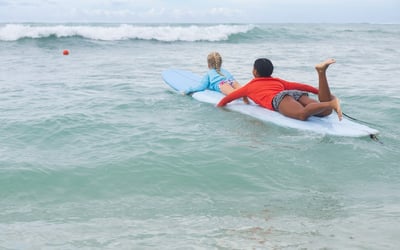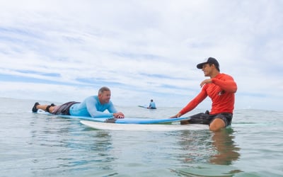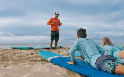 Surf gear, CPR-certified instructor