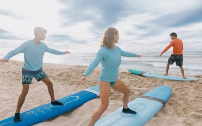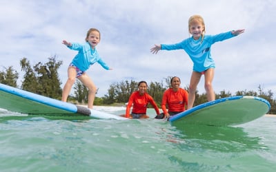Participants must be at least 3 years old. Group lessons are best for confident swimmers and athletes. Surfing involves inherent risks, including possible injury.