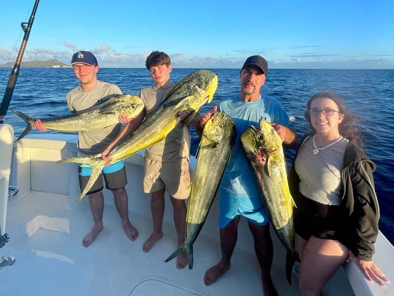 Capacity limited to 6 guests. Nonresident marine fishers age 15+ must have a Hawaii fishing license. Children 12 and under must wear life jackets; children under 5 must be supervised by an adult.