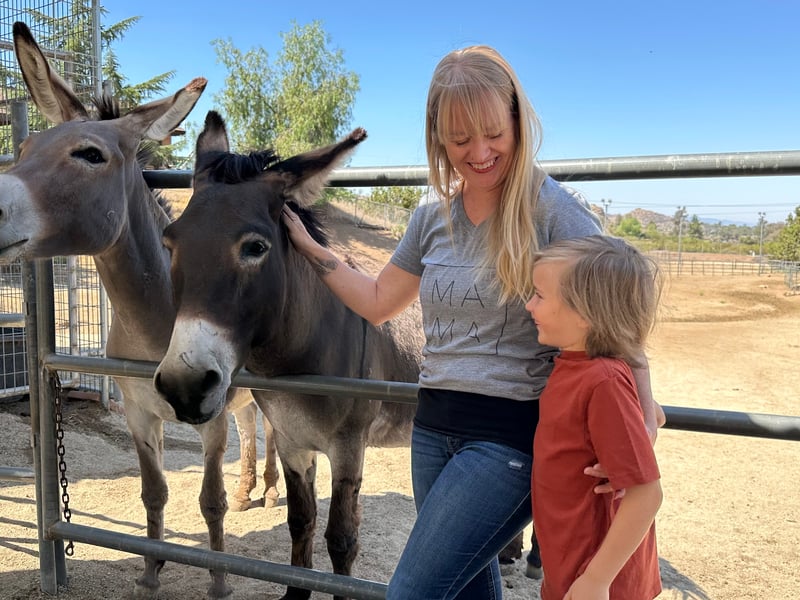 Contact with our wild animals is not allowed, but you can interact with farm animals like horses, donkeys, pigs, and bunnies.
