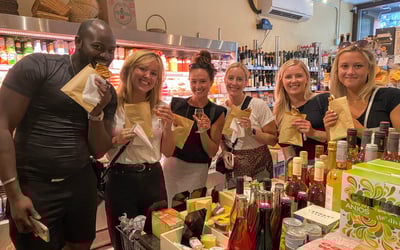 This experience includes plenty of food for a satisfying lunch! Tastings vary in style and portion size, with some tastings served while seated inside the eatery, and others served in a more “on the go” manner.