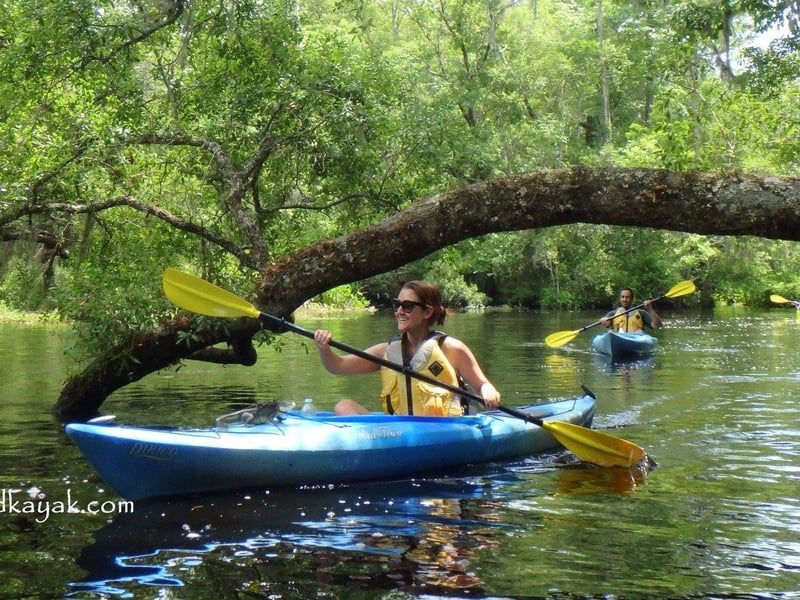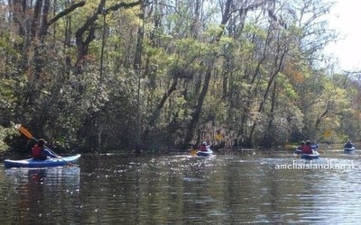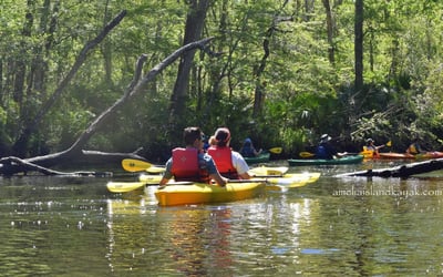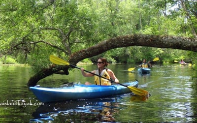 Explore Lofton Creek on a guided kayak tour through calm blackwater reflecting towering cypress. Enjoy chances to spot wildlife and flowers along this tidal creek.