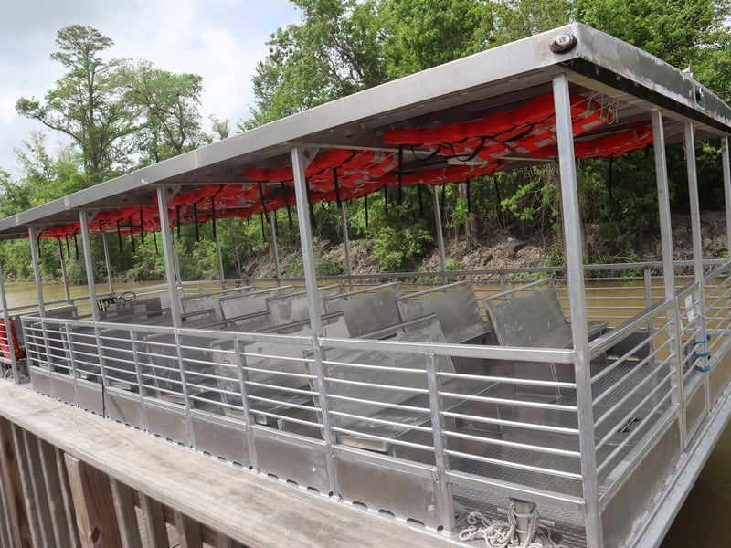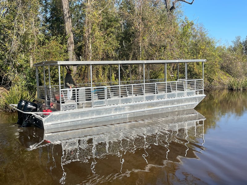 Ride a covered tour boat through the Louisiana bayou with Cajun stories and scenic views