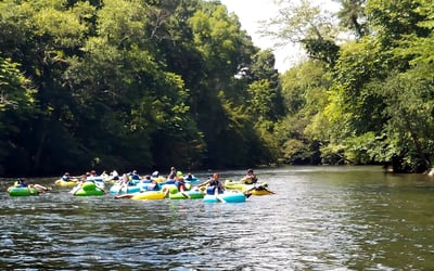 Float the Lower Ocoee on a tubing trip that lasts about 1.5 to 2 hours from start to finish. You’ll have the equipment you need plus guides on the water, ending back at the outpost.