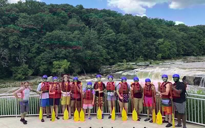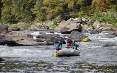 Experience beginner to intermediate whitewater on a 7.5-mile run of the Lower Yough. Paddle with an in-raft guide as your small group navigates Class II–IV rapids and scenic stretches of river.
