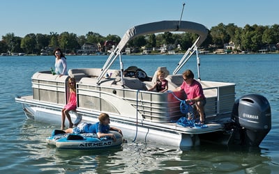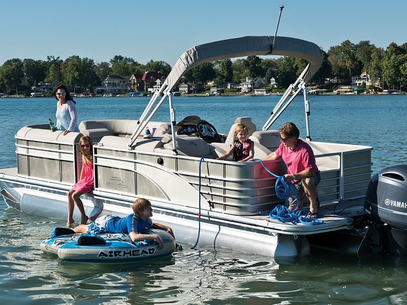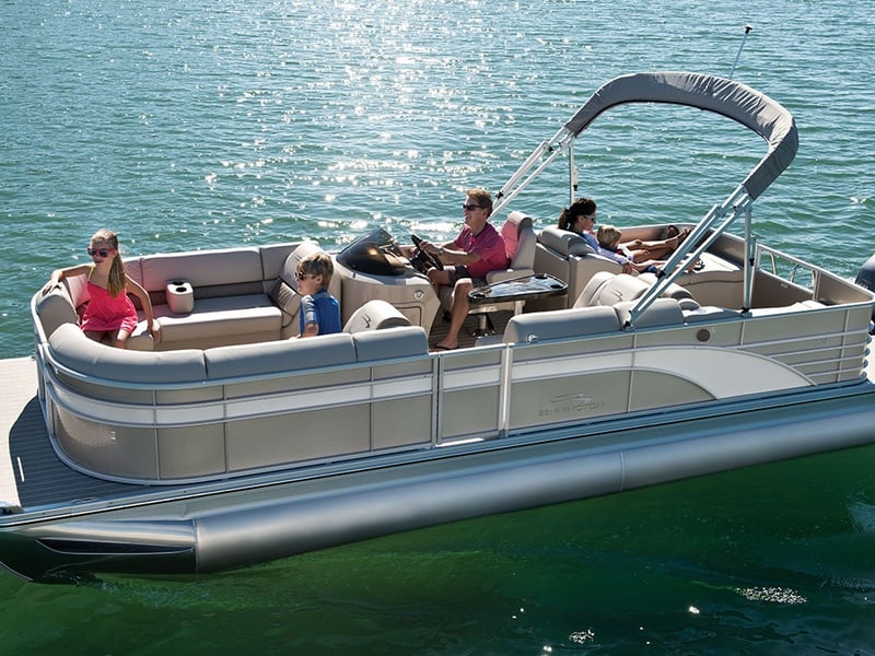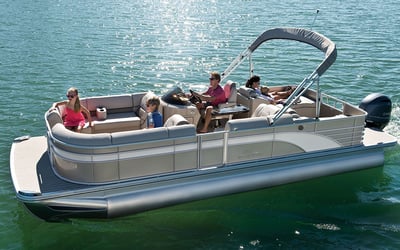 Explore the lake aboard a luxury 22 ft Bennington tri-toon with a 150hp Mercury. Bring up to 12 guests and use the included cooler and life jackets.