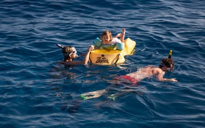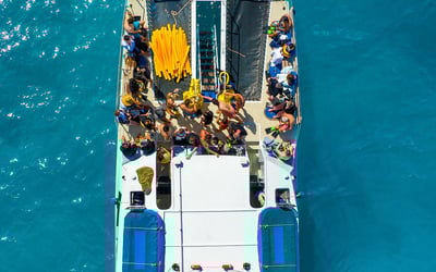 Check in 30 minutes before departure. Snorkel locations are determined daily by the captain based on weather and swell. Not wheelchair accessible; basic swimming ability recommended; alcohol served after snorkeling for ages 21+ with valid ID.