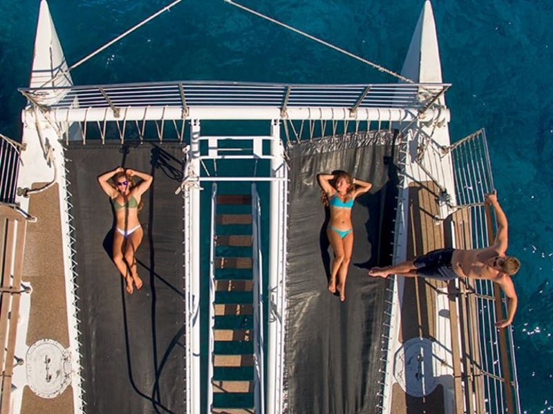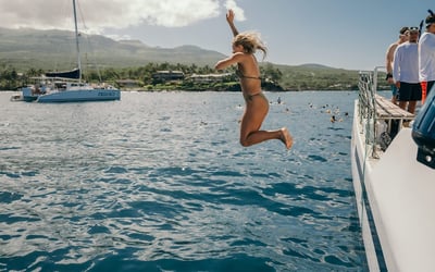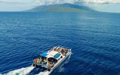 Snorkel Maui reefs on a stable 55-foot catamaran with gear and lunch included.