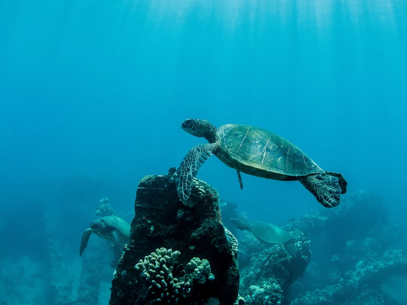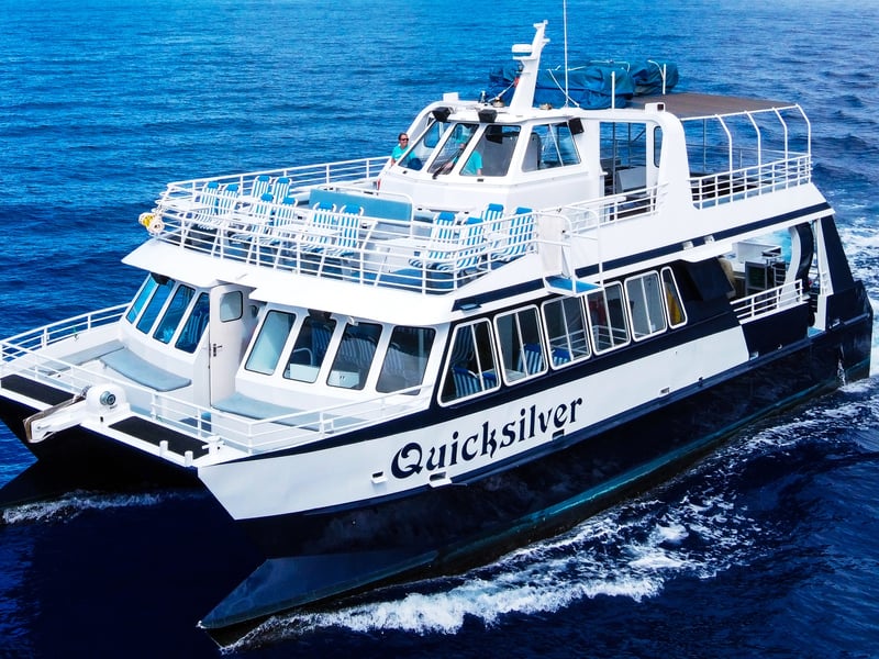 Set out from Ma'alaea Harbor on a double-decker catamaran to snorkel Maui's vibrant reefs. Spot Hawaiian green sea turtles, colorful fish, and enjoy fun amenities like a waterslide, showers, and spacious decks.