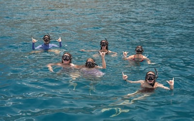 Maximum 6 guests per U.S. Coast Guard regulations; all ages count. Check in 30 minutes before departure. No full-face masks; use reef-safe, non-spray sunscreen; footwear removed for this barefoot vessel.