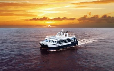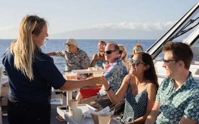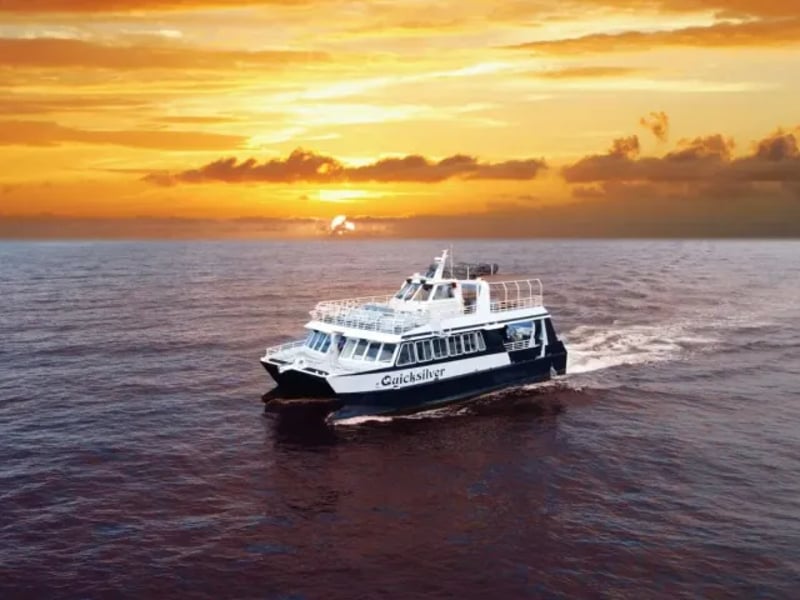 Enjoy a Maui sunset on a 2-hour dinner cruise aboard the double-deck Quicksilver catamaran. Savor a three-course meal, live music most nights, and wide-open ocean views.