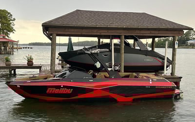 Cruise Lake Austin aboard a luxury Malibu 25 LSV wake boat with a professional captain at the helm. Enjoy wakesurfing, wakeboarding, tubing, or simply relaxing while premium gear and a shaded deck keep everyone comfortable.