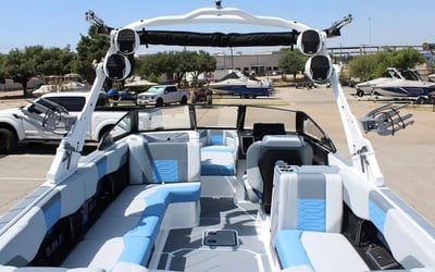 Ride a premium wake boat on Lake Austin for customizable wakesports fun with all gear and captain included.
