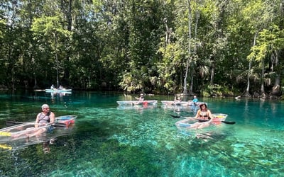 Glide across the crystal-clear waters of Silver Springs State Park on a transparent kayak or stable paddleboard. Guided by friendly instructors, you’ll search for gentle manatees, playful monkeys, and other wildlife in Florida’s largest spring.