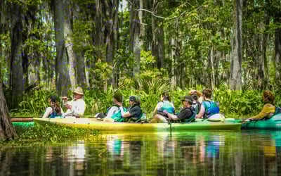 Glide by kayak through the slow-moving bayous of the Manchac swamp, once home to the ghost town of Ruddock. Follow your guide to spot wildlife and hear stories of early New Orleans explorers on a two-hour paddling adventure.