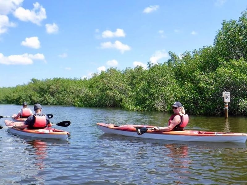 Paddle the calm waters of the Caloosahatchee Estuary and wind through a maze of coastal mangroves with a certified naturalist guide. Discover local wildlife and Indigenous history on a relaxed two-hour kayak adventure.