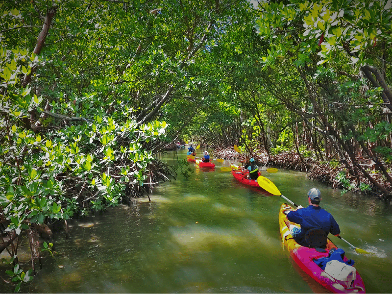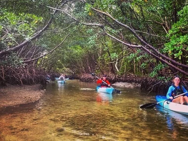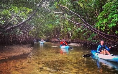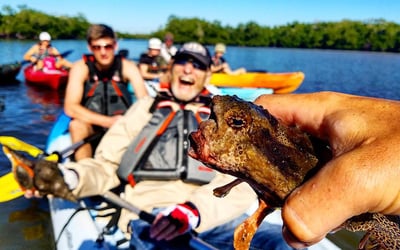 The guides here are consistently the standout feature, with names like Evan, Eben, Winston, Gerald, and Derek earning individual praise for their genuine expertise and personable approach. Many are biologists or have advanced degrees in marine science, and it shows in how they bring the ecosystem to life. They dive down to retrieve sea creatures for closer looks, share fascinating details about mangrove propagation, and maintain an engaging commentary throughout the 2.5 to 3-hour tours. Families appreciate how patient and accommodating the guides are with nervous kayakers and children. The tours explore Rookery Bay's mangrove tunnels and mudflats, offering sightings of dolphins, frigate birds, ospreys, sea stars, and various marine life. Reviewers love the conservation mission behind the operation, knowing their fees support environmental work in the area. Multiple visitors warn about serious sun exposure since your legs remain uncovered in the kayaks, so come prepared with sun-protective clothing, a hat, and plenty of sunscreen. The physical effort is moderate but sustained, so it's best suited for those without significant mobility limitations. Repeat customers speak volumes about the quality of the experience.