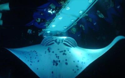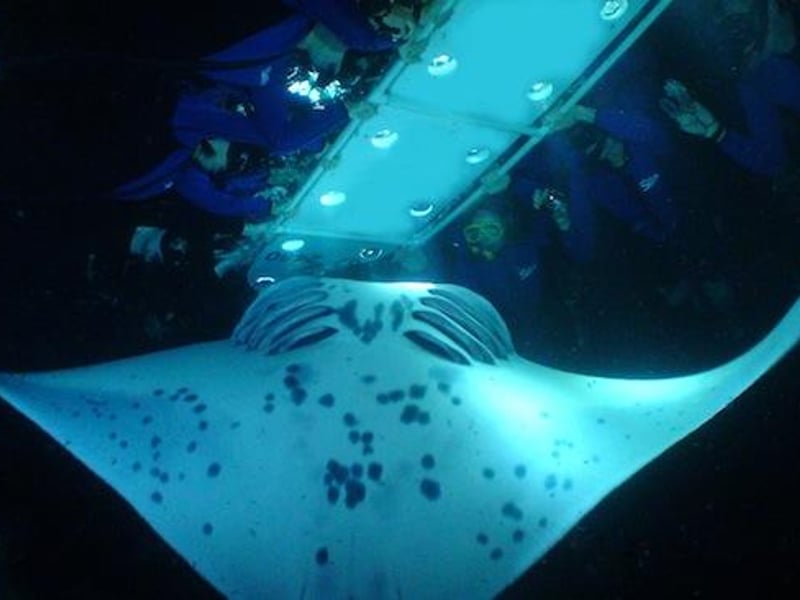 See giant manta rays up close under neon lights on a 2.5-hour night snorkel