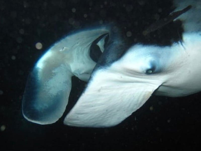 Snorkel after sunset with graceful manta rays, with bright lights and an in-water guide