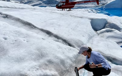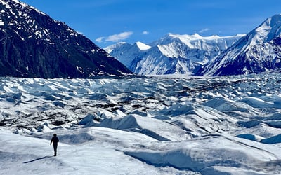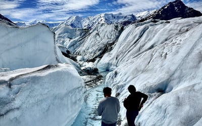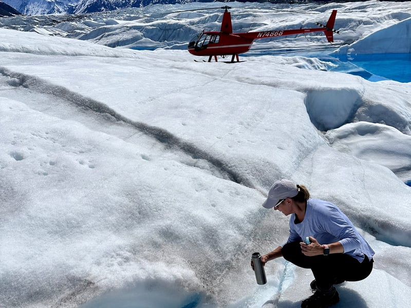 Fly by helicopter to a vibrant glacier pool and explore Matanuska Glacier on foot.