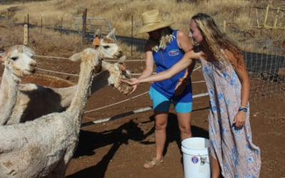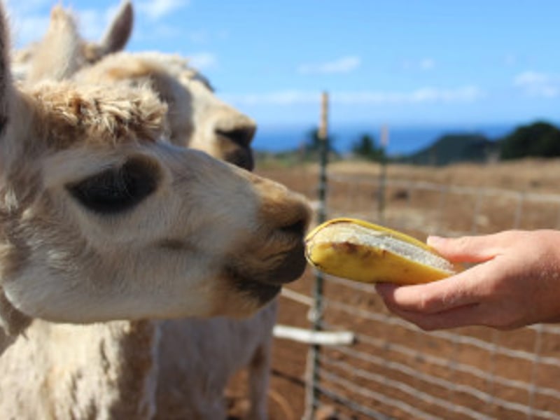 Enjoy a fun, educational visit to a Maui alpaca farm. Hand-feed and pet alpacas while taking in panoramic ocean views, then sip complimentary farm-made beverages.