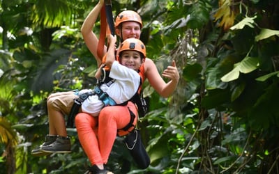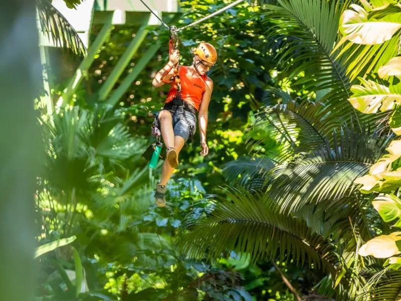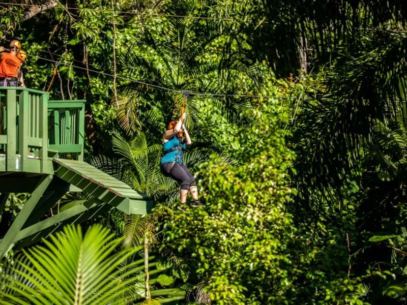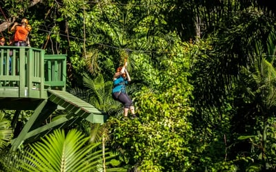 Soar through the jungle on five ziplines, three tree platforms, and an 85-foot suspension bridge. Enjoy mid-tour snacks and post-tour refreshments, then explore a tropical park.