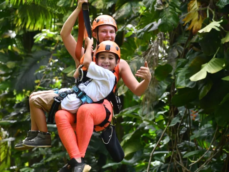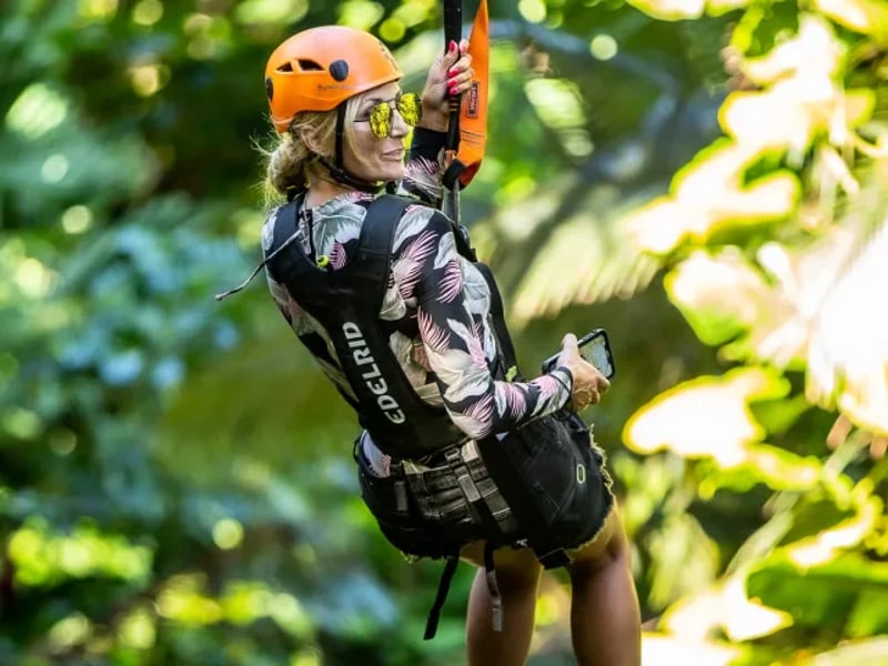 Fly on five ziplines and a suspension bridge with snacks included