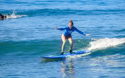 Ages 7+ only. Designed for two participants. Students use safe soft-top boards; fiberglass rentals may be available for experienced surfers for an additional fee.