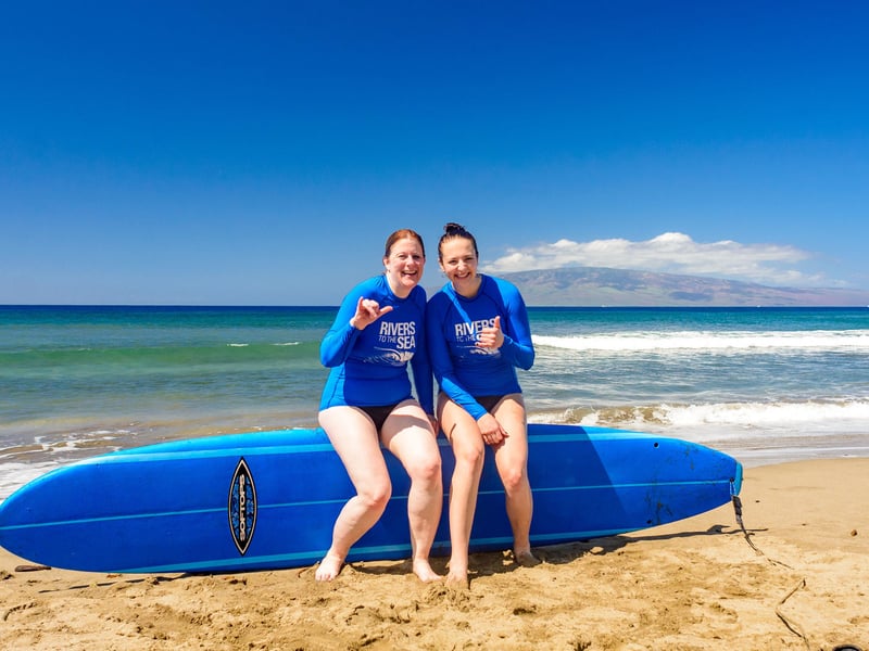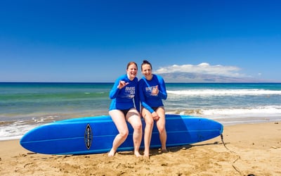 Share a private surfing lesson tailored for two in Lahaina. Learn at a beginner-friendly break with Maui-native instructors in 1.5 hours.