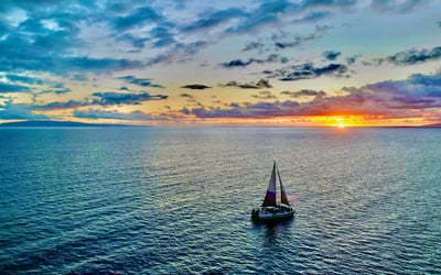 Sail Maui’s coast at sunset aboard Winona, a Hawaiian-built catamaran with a floating tiki bar. Enjoy appetizers, island-style music, and an open bar as you relax and watch for marine life, with whale sightings possible December through April.
