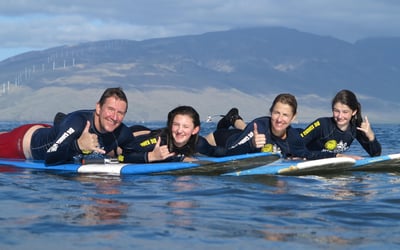 Big Kahuna's instructors consistently earn praise for their patience and ability to get first-timers standing on boards quickly. Names like Sol, Pedro, Jesse, David, and Bryan come up repeatedly, with reviewers noting how they tailor instruction to each person's needs and make nervous kids feel comfortable. The Kihei location (the Cove) seems ideal for beginners with small waves and shallow water, and there's a bonus many don't expect: sea turtles swimming alongside you during lessons. The photography package gets enthusiastic mentions throughout the reviews. Photographers like Johnny, Leilani, and Rory capture those triumphant moments on the waves, and multiple families mention framing these photos as trip souvenirs. Group lessons stay small with multiple instructors dividing people up, so you're not lost in a crowd. While one older review mentions a completely missed lesson (since resolved with a refund), recent feedback consistently points to a well-organized operation where the whole crew cheers for everyone in the water and genuinely wants you to succeed.