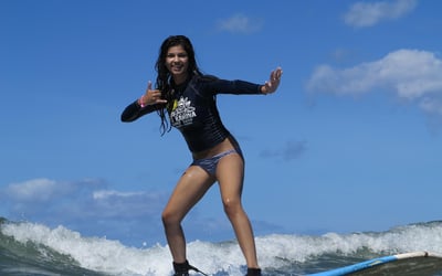 Everybody was great! Pedro was a patient and amazing instructor, all of us (wife, daughter, and I all never having surfed before) were able to stand up and have fun. Johnny takes some great pictures too! (I'm sure I'm falling down here, but don't tell anyone because he made me look like a pro!)