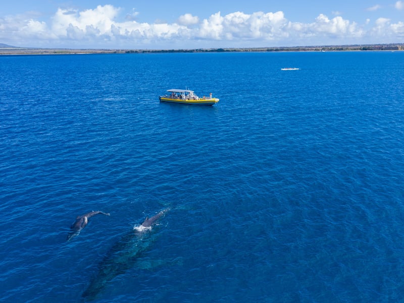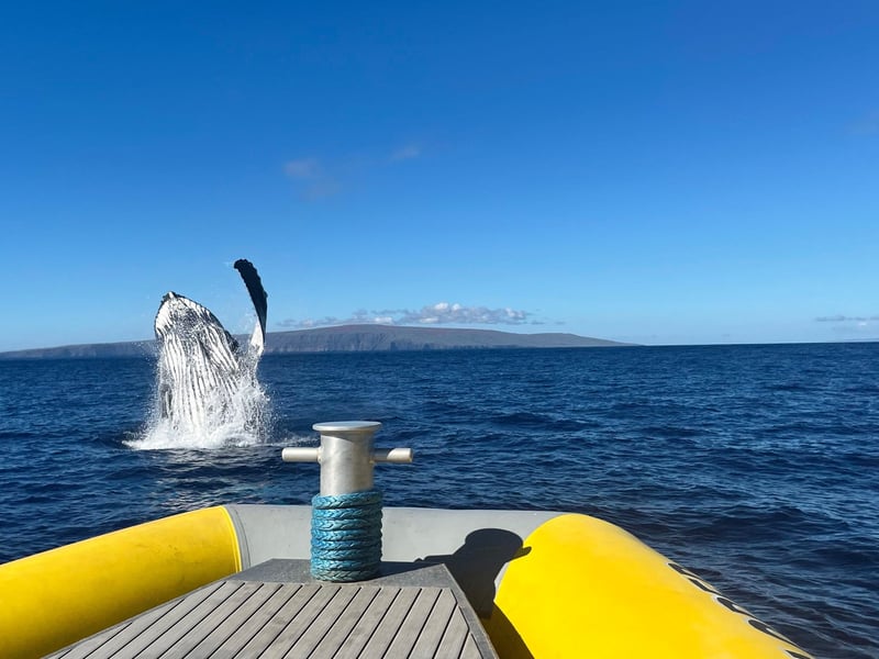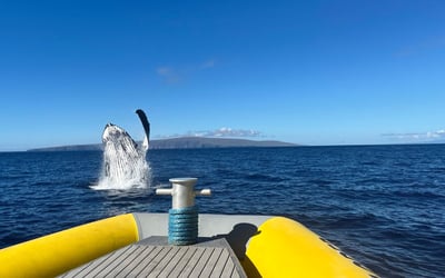 Experience up-close whale behavior on a small-group, ultra-stable 60 ft Super Raft in Maui’s humpback sanctuary